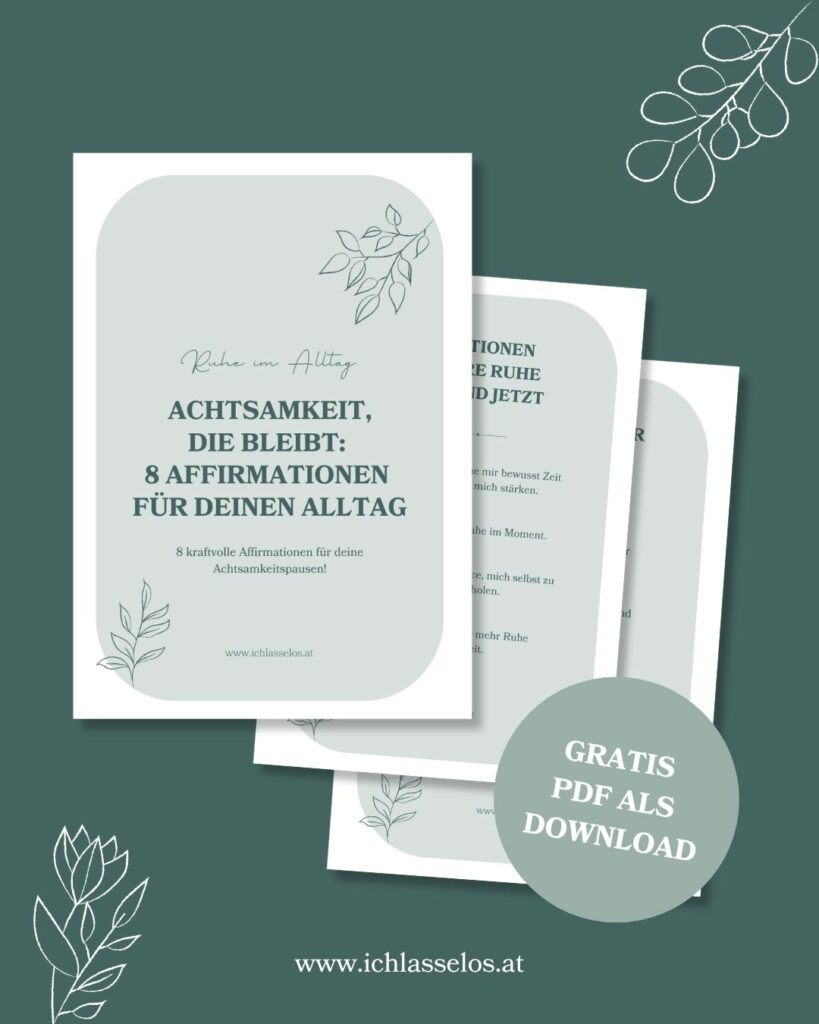 Hol dir jetzt deinen kostenlosen Download mit 8 kraftvollen Affirmationen, die dir helfen, mehr Achtsamkeit und Ruhe in deinen Alltag zu bringen. Drucke sie aus, hänge sie sichtbar auf und lass dich täglich daran erinnern, achtsam zu sein.