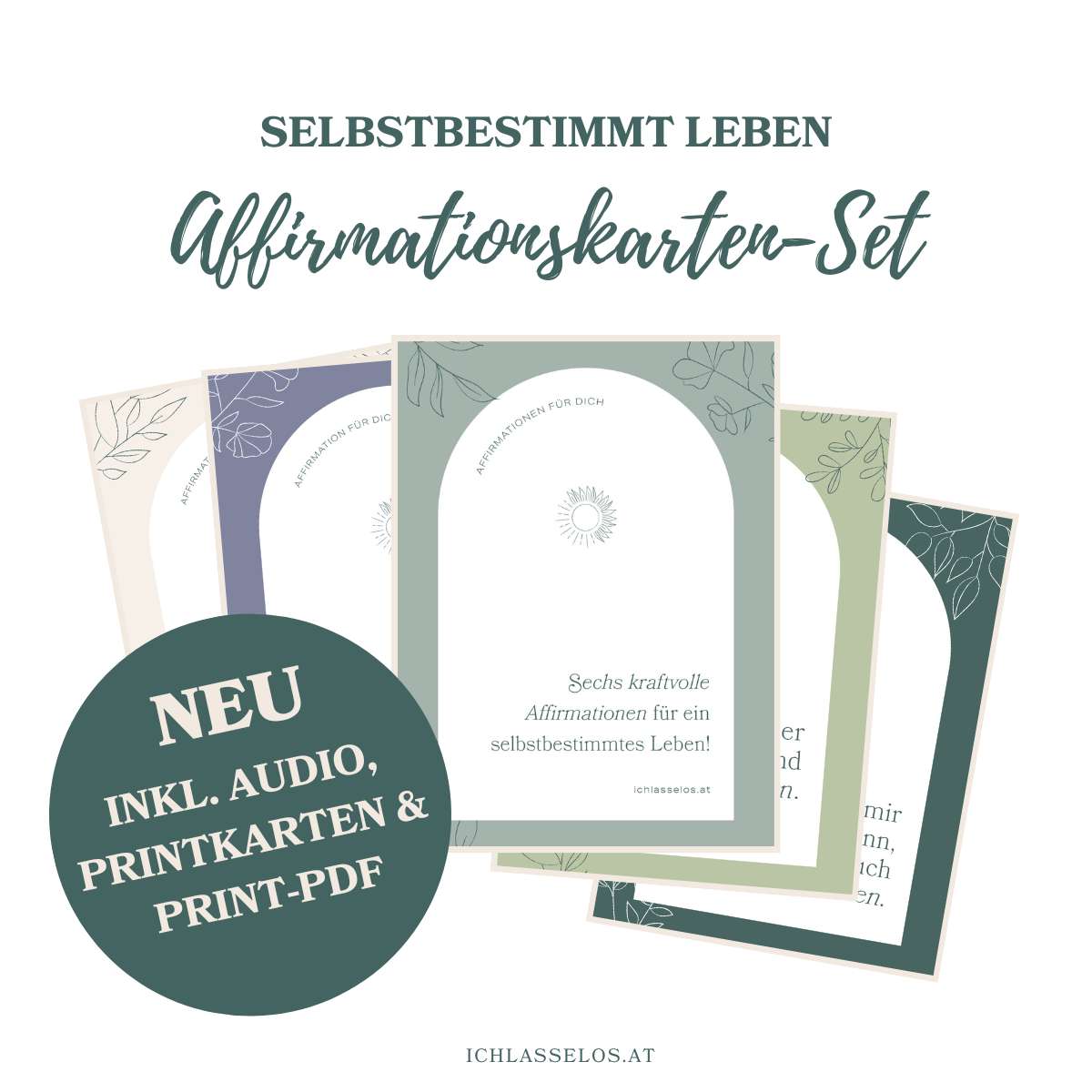 Du willst auf einem fürsorglichen Weg deine Selbstliebe und dein Selbstbewusstsein stärken? Positive Affirmationen sind ein kleines, feines Tool, um dich bei deinem Vorhaben zu unterstützen. Das Affirmationskarten-Set „selbstbestimmt Leben“ beinhaltet sechs kraftvolle Affirmationen für ein selbstbestimmtes Leben.